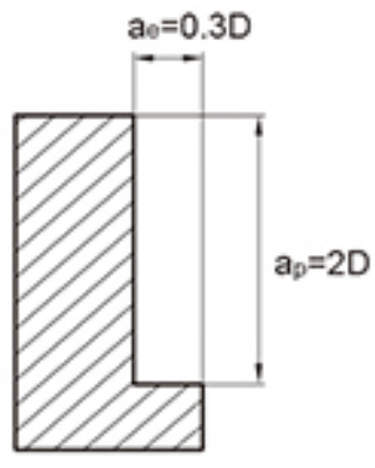 1. Gornja tablica prikazuje standardne vrijednosti za bočno glodanje. Prilikom rezanja utora s alatom, brzina bi trebala biti 60% do 80% od gornje tablice, a brzina posmaka trebala bi se temeljiti na 50% do 70% kao standard.