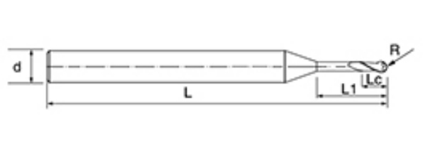 | br. | Promjer D | R kut R | Duljina flaute Lc | Efektivna duljina L1 | Ukupna duljina L | Dia drške d | Broj oštrica F |