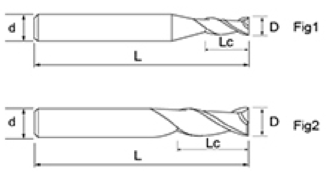 | br. | Promjer D | Duljina flaute Lc | Ukupna duljina L | Dia drške d | Broj oštrica F |