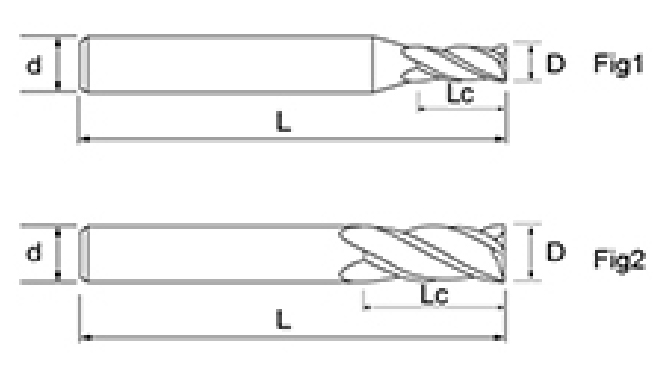 | br. | Promjer D | Duljina flaute Lc | Ukupna duljina L | Dia drške d | Broj oštrica F |