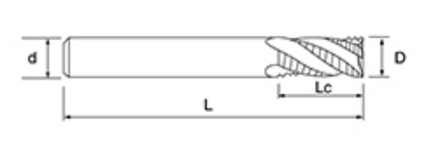 | br. | Promjer D | Duljina flaute Lc | Ukupna duljina L | Dia drške d | Broj oštrica F |