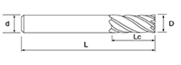 | br. | Promjer D | Duljina flaute Lc | Ukupna duljina L | Dia drške d | Broj oštrica F |
