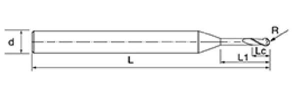 | br. | Promjer D | R kut R | Duljina flaute Lc | Efektivna duljina L1 | Ukupna duljina L | Dia drške d | Broj oštrica F |