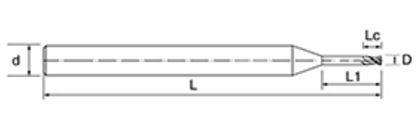 | br. | Promjer D | Duljina flaute Lc | Efektivna duljina L1 | Ukupna duljina L | Dia drške d | Broj oštrica F |