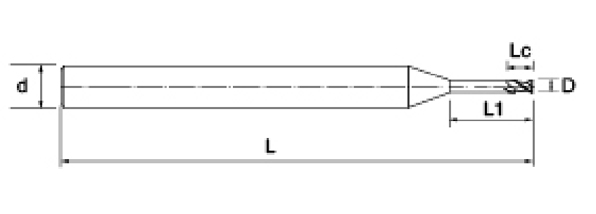 | br. | Promjer D | Duljina flaute Lc | Efektivna duljina L1 | Ukupna duljina L | Dia drške d | Broj oštrica F |
