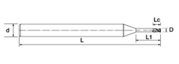 | br. | Promjer D | Duljina flaute Lc | Efektivna duljina L1 | Ukupna duljina L | Dia drške d | Broj oštrica F |