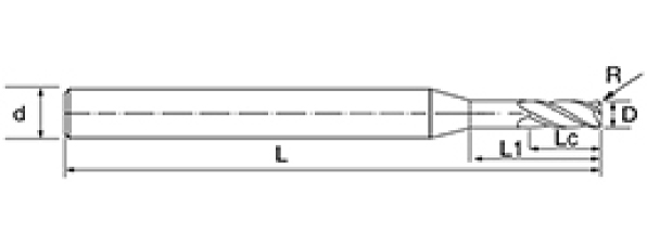 | br. | Promjer D | R kut R | Duljina flaute Lc | Efektivna duljina L1 | Ukupna duljina L | Dia drške d | Broj oštrica F |