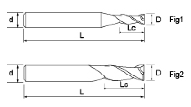 | br. | Promjer D | Duljina flaute Lc | Ukupna duljina L | Dia drške d | Broj oštrica F |