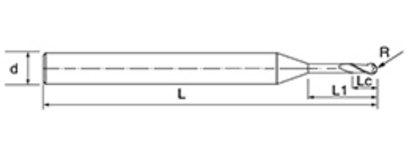 | br. | Promjer D | R kut R | Duljina flaute Lc | Efektivna duljina L1 | Ukupna duljina L | Dia drške d | Broj oštrica F |