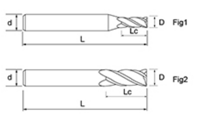 | br. | Promjer D | Duljina flaute Lc | Ukupna duljina L | Dia drške d | Broj oštrica F |