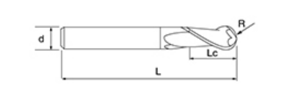| br. | Promjer D | R kut R | Duljina flaute Lc | Ukupna duljina L | Dia drške d | Broj oštrica F |