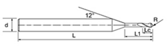 | Serija alata | Promjer | Radijus | Polumjer kuta | Duljina svirale | Efektivna duljina | Ukupna duljina | Dia drške | |||